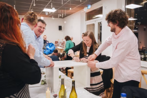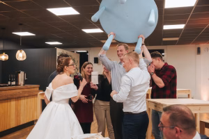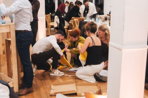 Ce n’est pas tout, les mariés avaient ajouté un second thème à leur journée : les pays nordiques ! Ce fil conducteur se ressentait dans leur décoration, avec des noms de table en noms de meubles IKEA, leur nourriture, mais aussi leurs animations. Vous vous souvenez des cadeaux au pied du sapin ? Sachez qu’ils ont permis la réalisation de l’animation la plus originale qu’il m’ait été donné de photographier ! Noa et Cédric avaient organisé un concours entre les tables. Chaque table devait choisir un cadeau et quelle ne fut pas leur surprise en découvrant un meuble IKEA à monter. Une sorte de cadeau empoisonné finalement ! Le but était simple : un concours entre les tables pour savoir qui monterait le plus rapidement un meuble IKEA de chambre d’enfant.