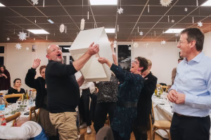 Alors que la fête battait son plein autour de la délicieuse tartiflette choisie par les mariés, les festivités du nouvel an allaient pouvoir commencer. Une fois le décompte de minuit passé, les félicitations aux mariés ont laissé place aux vœux de bonne année. Et voilà que l’année 2024 est terminée. Pour ma part, j’ai adoré pouvoir la terminer aux côtés de ce couple d’une gentillesse folle.