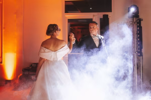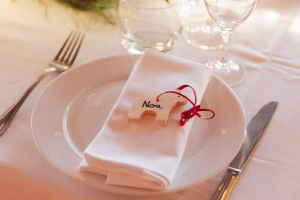 Dès les préparatifs, l’air frais de décembre a donné le ton : un mariage d’hiver à la fois doux, lumineux et rempli de chaleur humaine. Loin des grandes chaleurs des mariages d’été, Noa & Cédric ont choisi un thème idéal pour la saison : celui de Noël. Un grand sapin illuminé trônait dans la salle, entouré de paquets cadeaux qui avaient quelques secrets à révéler. Et comment ne pas parler de ce magnifique plafond digne d’un banque d’Harry Potter ?